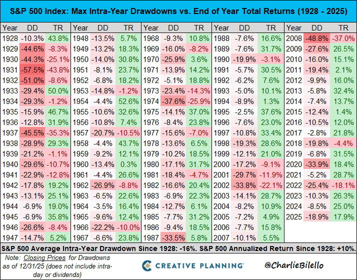 לסיום, שני גרפים שמכניסים פרופורציות. הראשון מראה שדולר אחד שהושקע ב-S&P 500 ב-1964 שווה היום 455 דולר, אך דולר שהושקע בברקשייר האת'וויי שווה 60,883 דולר. זהו כוחה של השקעת ערך ארוכת טווח. הגרף השני מזכיר לנו שבשנת 2025 חווינו ירידה (Drawdown) של כ-19% באמצע השנה, ובכל זאת סיימנו עם תשואה חיובית של כ-18%. הלקח: אין תשואה בלי סיכון, והיכולת לספוג ירידות היא המפתח להצלחה.