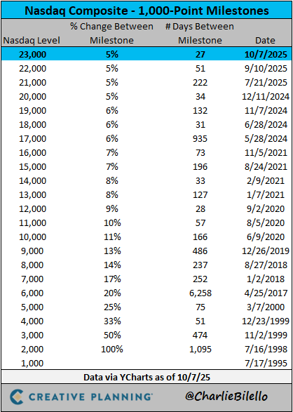 הנאסדק חצה את רמת 23,000 - עלייה של 1,000 נקודות תוך 27 ימים בלבד, פרק הזמן הקצר ביותר אי פעם למעבר בין אבני דרך כאלו.