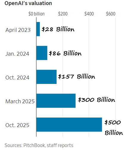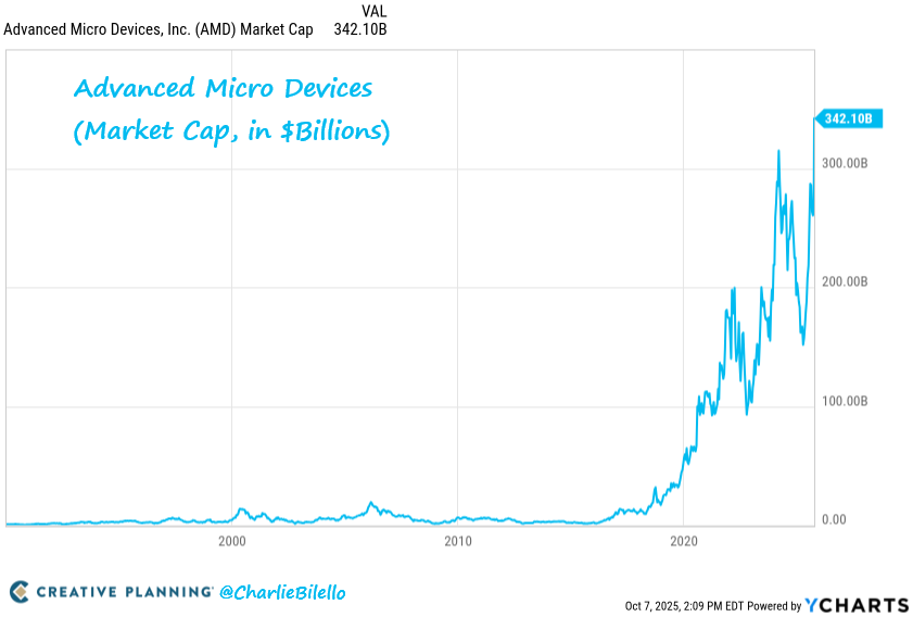 שווי OpenAI הוערך כעת ב-500 מיליארד דולר - מה שהיה הופך אותה לחברה ה-16 בגודלה במדד S&P 500 אילו נסחרה בבורסה. ההשקעה שלה ב-AMD דחפה את מניית השבבים לשיא חדש - שווי של 342 מיליארד דולר, לעומת 1.5 מיליארד בלבד לפני עשור.