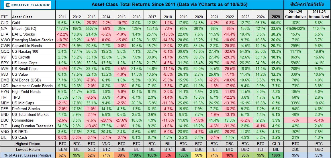 זו הפעם הראשונה בהיסטוריה ששני הנכסים המובילים בשנה קלנדרית הם זהב וביטקוין יחד.