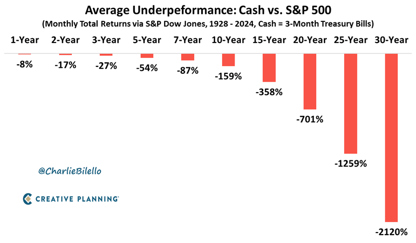 עוד נתון מעניין: לאורך 30 שנה, שמירה על מזומן גוררת הפסד ערך ממוצע של 2,000%.