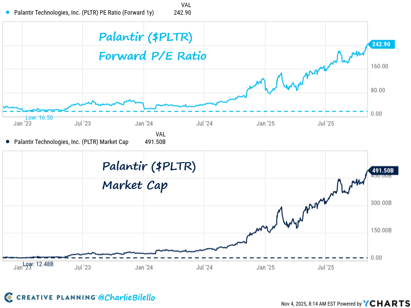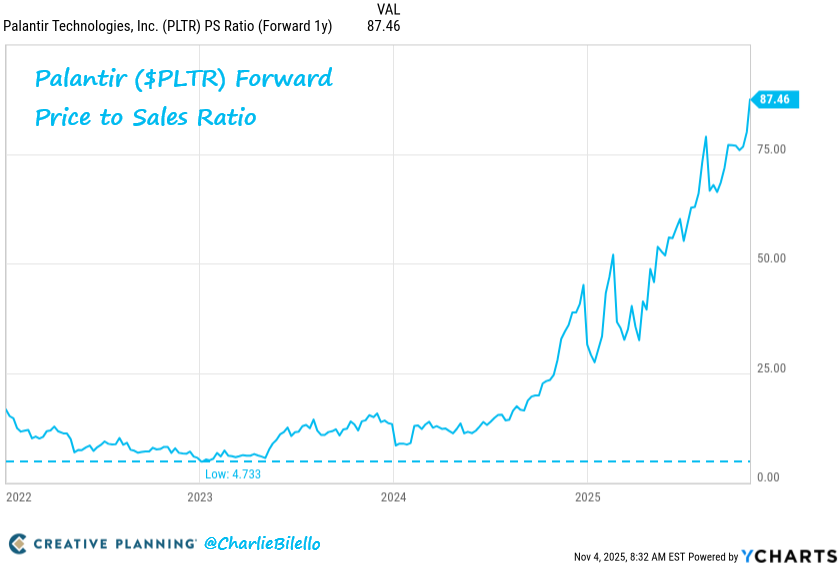 פלאנטיר נסחרת היום במכפיל רווח קדימה של יותר מ-240 ובמכפיל מכירות של 87.