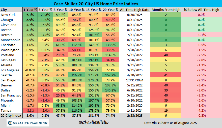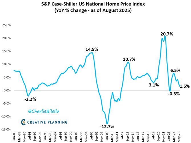 מדד מחירי הבתים של Case-Shiller עלה רק ב-1.5% בשנה האחרונה - הקצב הנמוך ביותר זה שנתיים. תשע ערים כבר רשמו ירידה שנתית, ובשוק יש עודף היצע של כחצי מיליון מוכרים לעומת קונים.