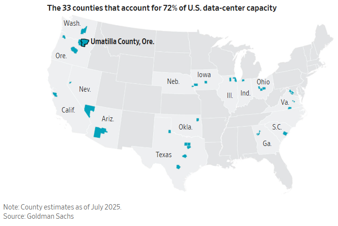 ריכוזיות לא רק במניות - גם בתשתיות. רוב יכולת העיבוד בארה"ב מרוכזת במספר קטן של אזורים.