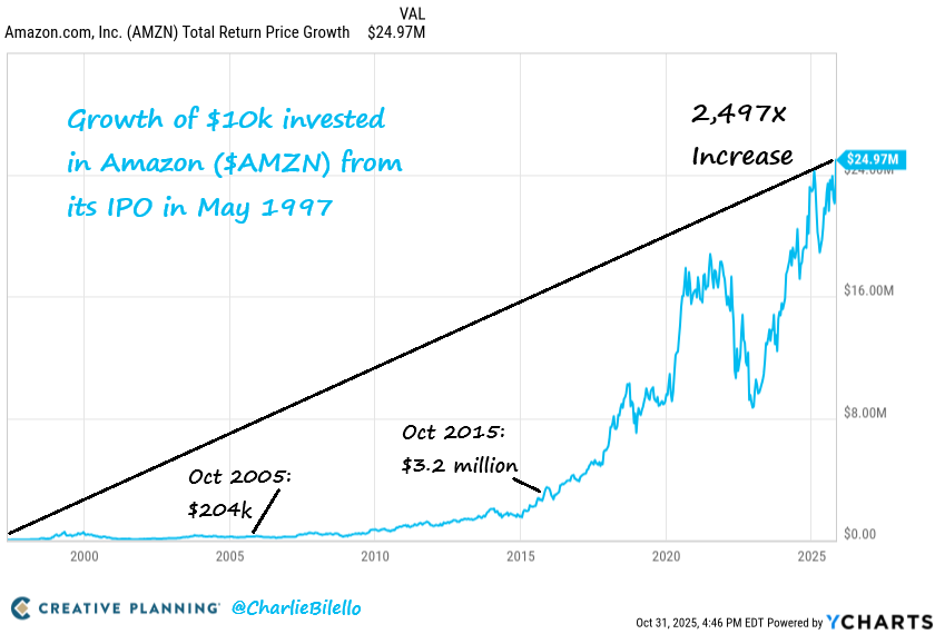 10,000 דולר שהושקעו בהנפקת אמזון במאי 1997 שווים היום כמעט 25 מיליון דולר.