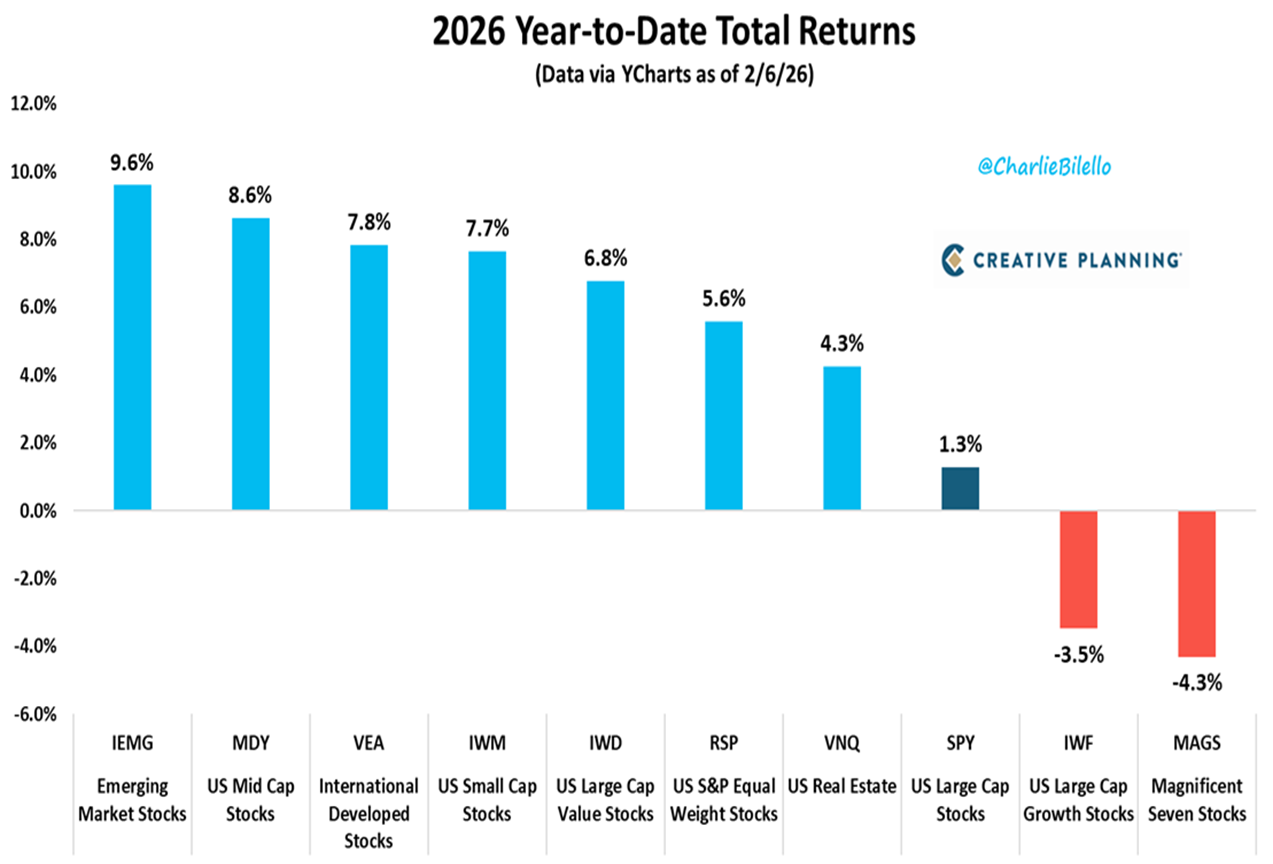 מונח ההשקעות הפופולרי ביותר של השנים האחרונות, קבוצת שבע המופלאות, מאבד מהרלוונטיות שלו. מתחילת שנת 2026, רק שתי חברות מתוך הקבוצה הזו - גוגל ואנבידיה - מצליחות להכות את מדד ה-S&P 500. נתון זה מוכיח את מה שתמיד טענתי לגבי ריכוזיות יתר - כאשר השוק מתחיל להבחין בין חברות עם מנועי צמיחה מבוססי מציאות לאלו שנשענות על תהילת העבר, הפערים בביצועים מתרחבים משמעותית. זוהי עדות לכך שאי אפשר להסתמך רק על קניית המדד הרחב, ויש צורך בניתוח פרטני של כל חברה.