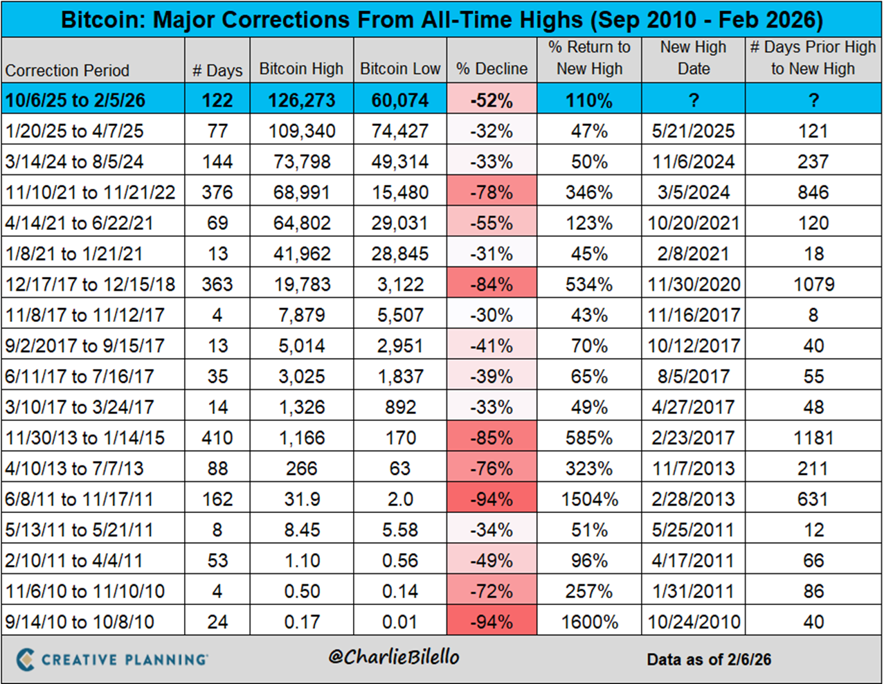 גרף הצניחות ההיסטוריות של הביטקוין מראה ירידה של יותר מ-52 אחוזים מהשיא שנקבע באוקטובר 2025. מדובר בפעם התשיעית בהיסטוריה של המטבע שבה הוא קורס ביותר ממחצית מערכו. משמעות הנתון הזה פשוטה - תנודתיות אלימה איננה תקלה בשוק הקריפטו, היא מאפיין יסודי שלו. כל מי ששוקל להקצות הון לתחום זה חייב להכיר בעובדה שמדובר בנכס ספקולטיבי בסיכון גבוה ביותר, שאינו מתאים לכל פרופיל השקעה.