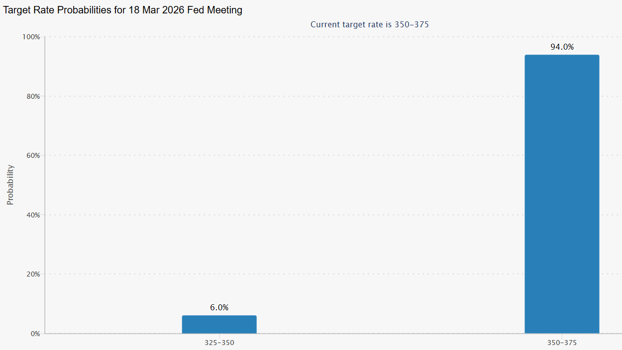 יושב ראש הפד נכנס לישורת האחרונה של תפקידו, והסיכויים להורדות ריבית בקרוב הולכים ומתפוגגים. השוק מתמחר סבירות אפסית להורדה במרץ, וסיכוי נמוך מאוד לאפריל, תוך ציפייה לשתי הורדות בלבד לאורך כל שנת 2026. סביבת האינפלציה הדביקה והחוזק בשוק העבודה מאלצים את הבנק המרכזי לשמור על מדיניות מרסנת לאורך זמן רב מהמצופה. הריבית הגבוהה צפויה להמשיך להכביד על עלויות המימון של חברות ממונפות ולהפוך נכסים חסרי סיכון כמו אגרות חוב ממשלתיות לאטרקטיביים יותר עבור תיק ההשקעות הדפנסיבי.